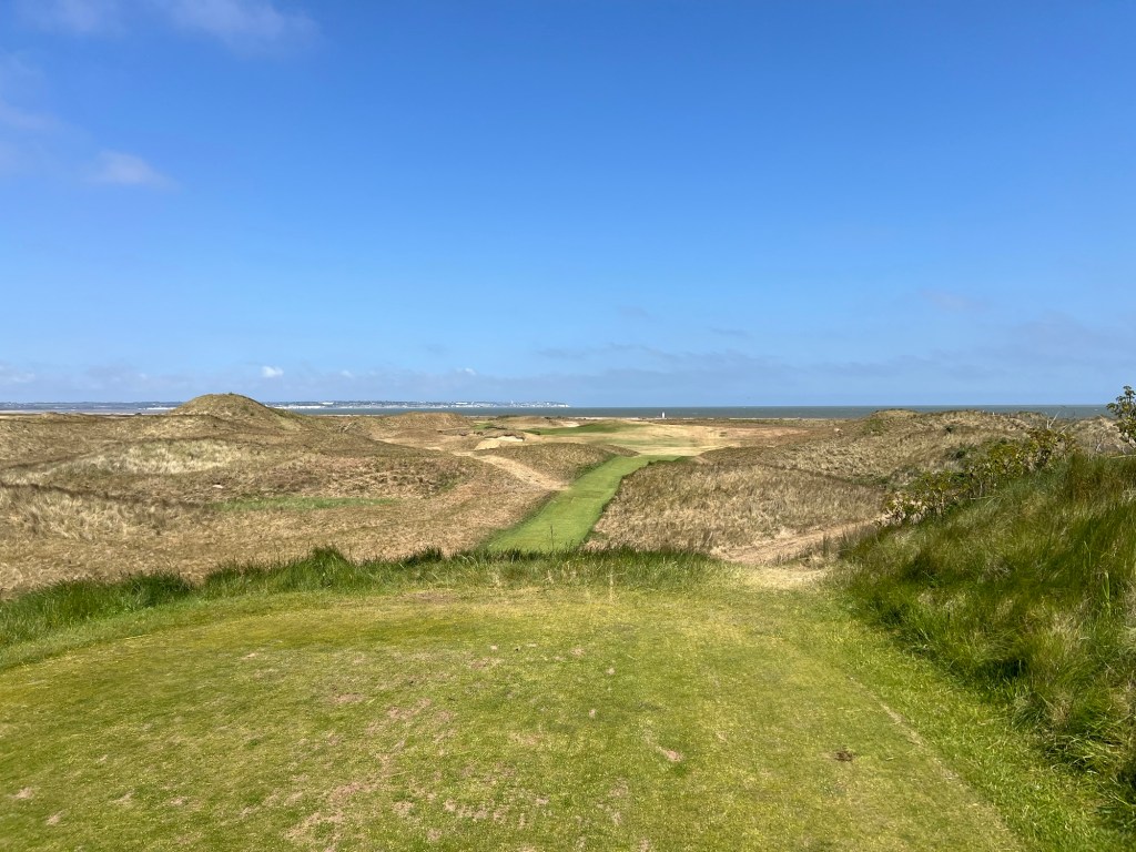 Par4 5th: one of the rare scenic vistas on the course with an elevated tee box overlooking the bay. With the wind coming from the see this completely exposed tee box really makes you feel the wind. Given the perspective alteration of a raised viewpoint, the fairway looks miles long, but in fact the mounds and bunkers are very much in play. Overall I do like the fact that most of the course forces you to think about the golf rather than the scenery, but if there was no scenic vistas like this at all I would feel like it is a shame.