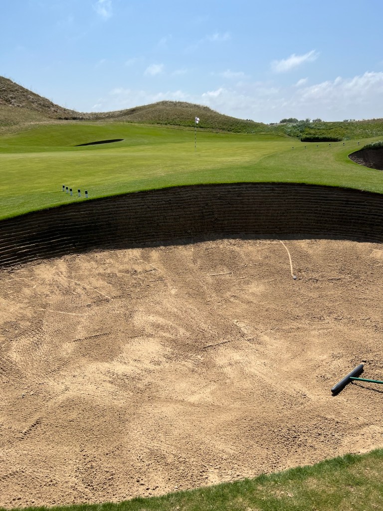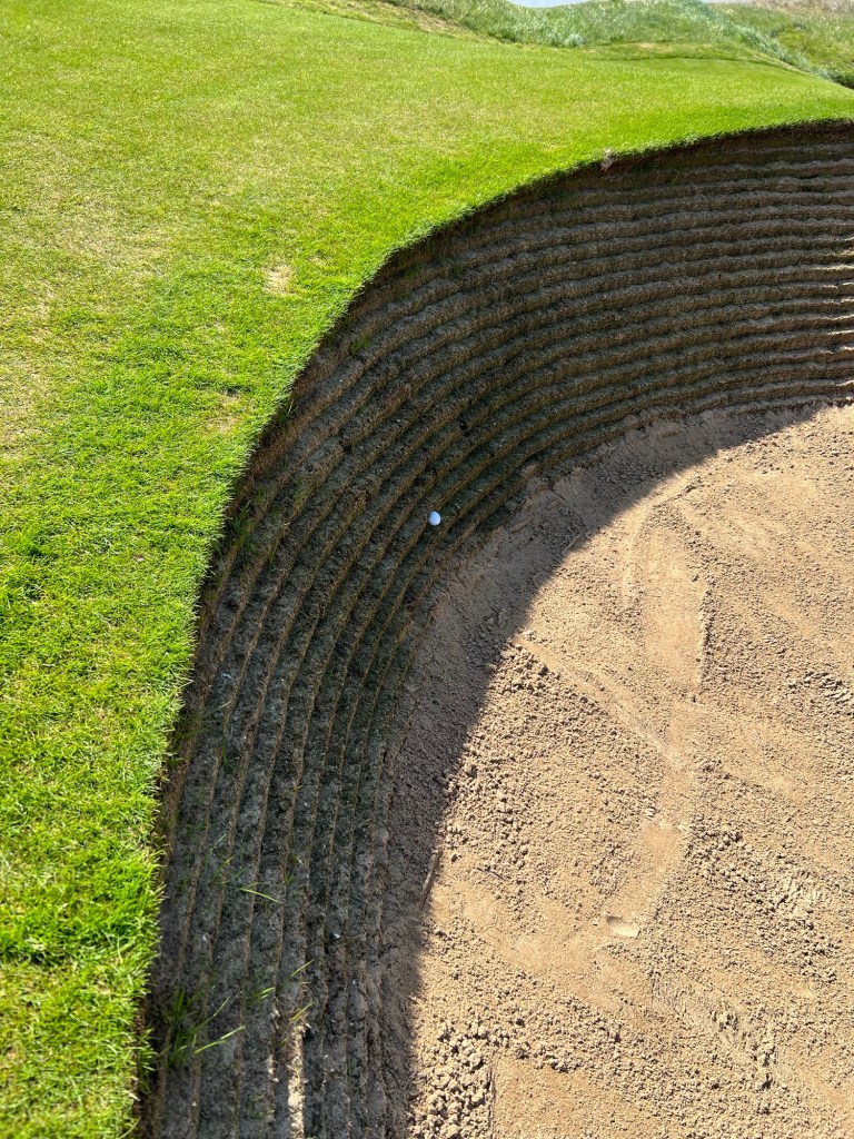 Par4 4th: what i found most interesting part of this hole is that despite the infamous towering bunker you have to hit over from the teebox, that isn’t actually the most intimidating part of the hole. The relief you feel after driving over the giant hill is only short lived once you see the green. With the pin position on what feels like a borderline non-conforming part of the green, right on the edge of a giant slope into a collection valley, even being on the green in regulation isn’t protection against a high score (as my playing partner found out with a quadruple bogey despite being on the green in two).